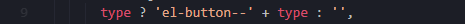 故这边给组件添加了一个可能为el-button--default、el-button--primary、el-button--success 、el-button--warning 、el-button--danger 、el-button--info 、el-button--text的class。