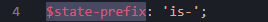 此方法在根节点定义由父节点,$state-prefix(定义在config.scss)和传入的值组成的css