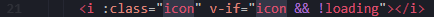 这边非常简单就是将传入的值赋值到其中i标签的class上,不过要注意,当loading为true的时候i标签不出现。之后再通过引入的字体文件映射最终形成图标