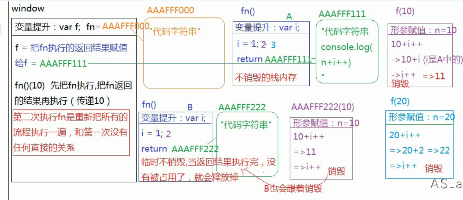 f= fn() //把fn执行的返回结果赋值给f 实际上f是function(n){console.log(n + i++)}