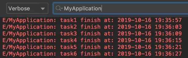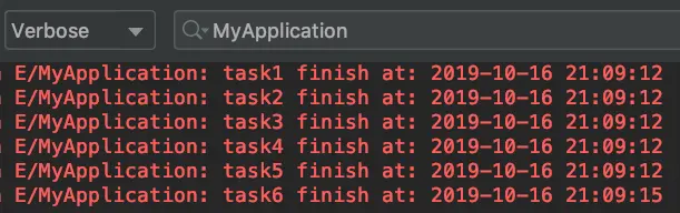 这个例子比较简单,就是在MainActivity启动时,执行了六次MyTask,并将任务执行后的时间节点打印出来。