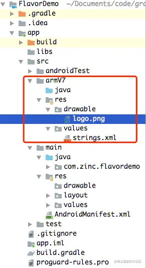 (2)最后将我们的 logo.png 图片放入 drawable 中即可。在编译包时,会将armV7 文件夹中的资源覆盖在 main 中同名的资源。