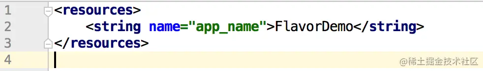 (3)这种方式也同样适用于其他资源。例如:此处我们也同样建立了 strings.xml 文件,其中也写入 app_name 的 string资源,最终编译 armv7 时,形成的 app_name 则会为 flavor_armv7。