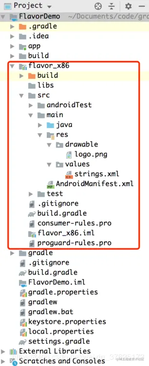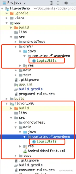 聪明的童鞋其实已经发现,我们在第三小点中,有存在一个 “java” 的文件夹,我们只需要保持每个风味都存在相同的类即可(类路径要完全一样,这样切换不同的风味包都不需要任何更换逻辑)。
