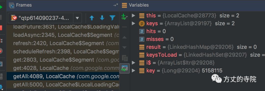 ImmutableMap< K, V> getAll( Iterable<? extends K> keys) throws ExecutionException { int hits= 0 ; intmisses = 0; // 省略一大坨 try { if (!keysToLoad.isEmpty()) { try {// 调用loadAllMap<K, V> newEntries = loadAll(keysToLoad, defaultLoader);