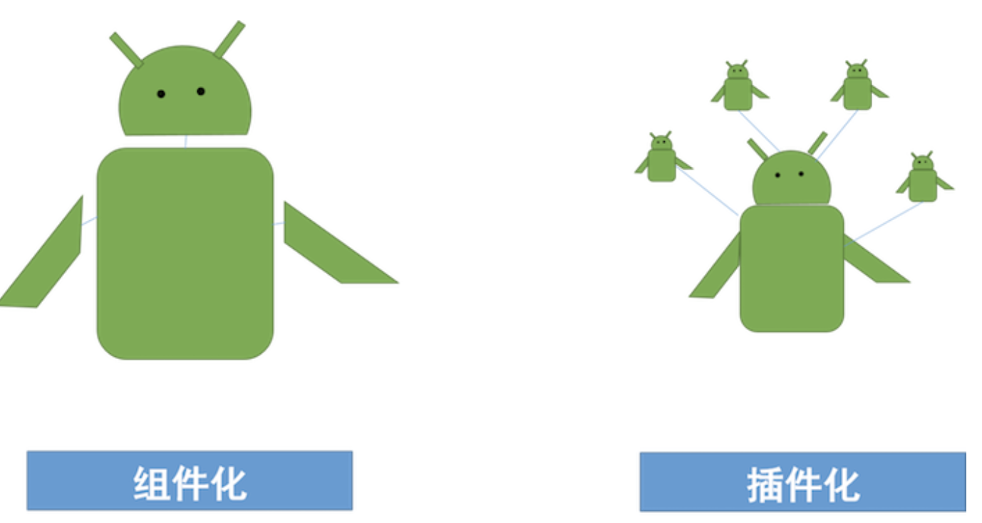 当然从个人的理解上,模块化只是一种思想,就是大化小,分开治理,在实际项目中如何具体实施,目前有两种方案,一个是组件化,一个是插件化