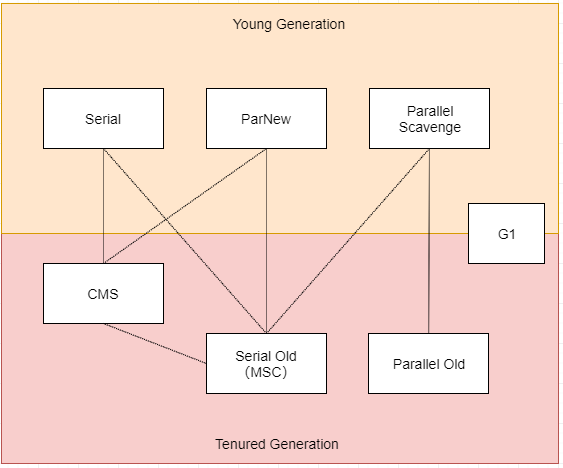 | UseConcMarkSweepGC | 使用 ParNew + CMS + Serial Old 的收集器组合进行内存回收。Serial Old 收集器将作为CMS收集器出现 Concurrent Mode Failure 失败后的后备收集器使用 |
