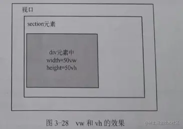 7:vw和vh:视口也就是文档内容的可视区域,将他的宽和高均分为100份,50vw等于视口宽度的50%,50vh等于视口高度的50%。