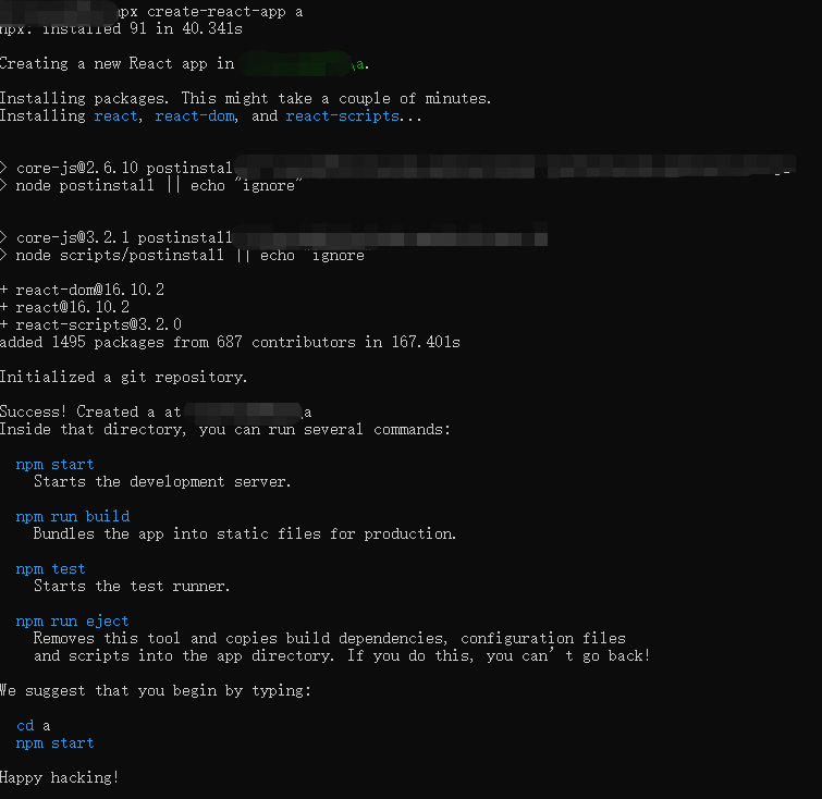 截至到此如果运行npm run eject时,报错。则试着先输入以下命令