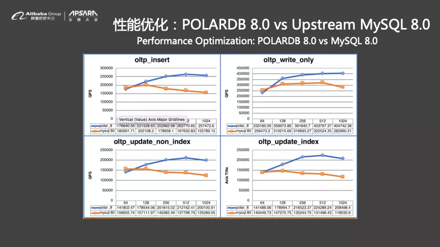 官方MySQL向8.0版本演进时过于重视高配机型的适配,而忽略了小型机的性能。而云上用户大部分还是用的8核、16核的小型机,因此使用MySQL8.0的性能会发生退化。因此,阿里云POLARDB数据库针对于这个问题进行了一系列优化。