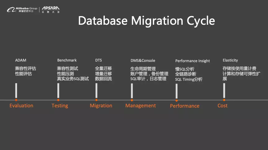 Oracle数据库迁移需要经过评估、测试、迁移、管理、分析诊断以及付费等诸多环节,而阿里云为用户在各个阶段提供了非常完善的功能。