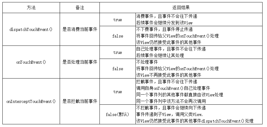 | onInterceptTouchEvent() | 判断是否拦截某个事件 | 在dispatchTouchEvent()内部调用 |
