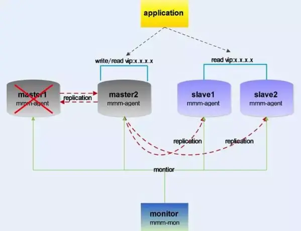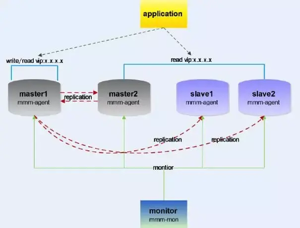 MMM(Master-Master replication managerfor Mysql,Mysql主主复制管理器)是一套灵活的脚本程序,基于perl实现,用来对mysql replication进行监控和故障迁移,并能管理mysql Master-Master复制的配置(同一时间只有一个节点是可写的)。