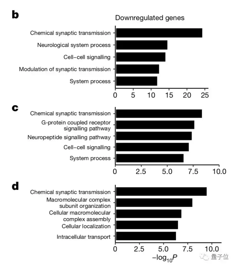 被抑制了的基因,有这些 (b-d是三个部位的大脑皮层) ,它们都和神经活动有关: