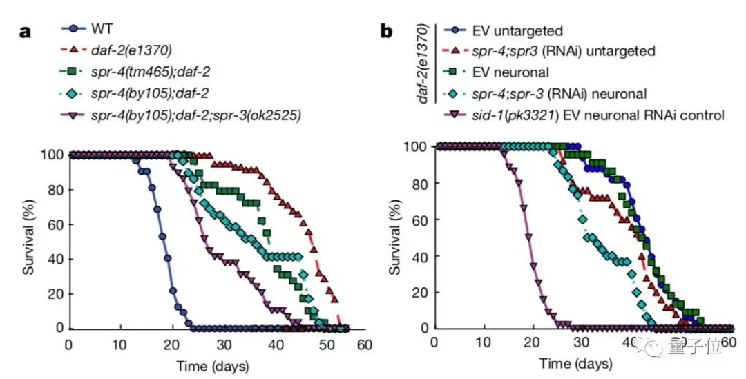 不止是实验室培育的突变线虫,在野生线虫当中,spr-4的过度表达抑制了兴奋,延长了寿命。