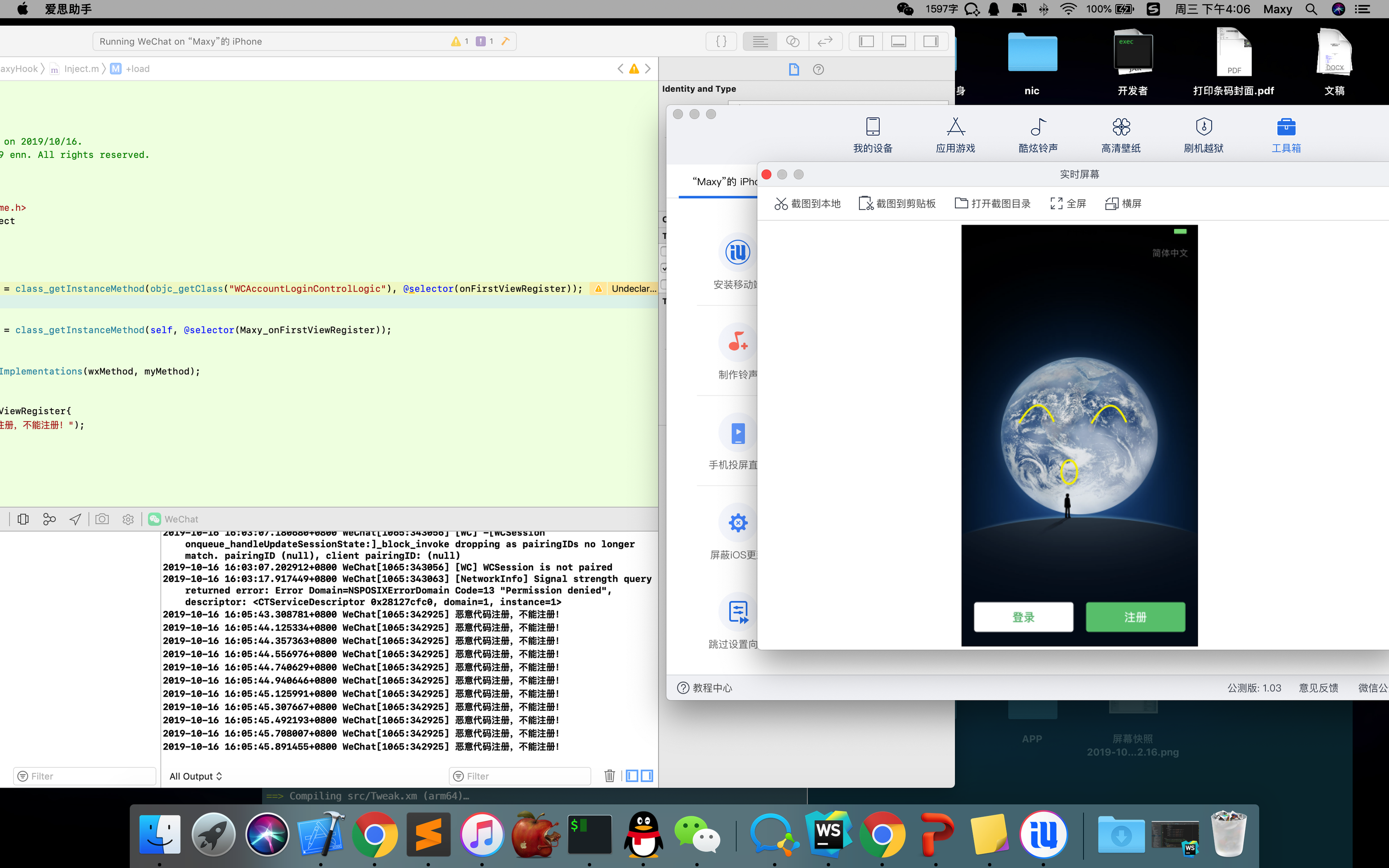 9、运行Xcode,重签app,这里要注意一点,上一章我写的脚本,在最后一行'#代码注入'是注释状态。那么这次运行放开,才能注入成功。Framework的名字也要改成代码中对应的名字。