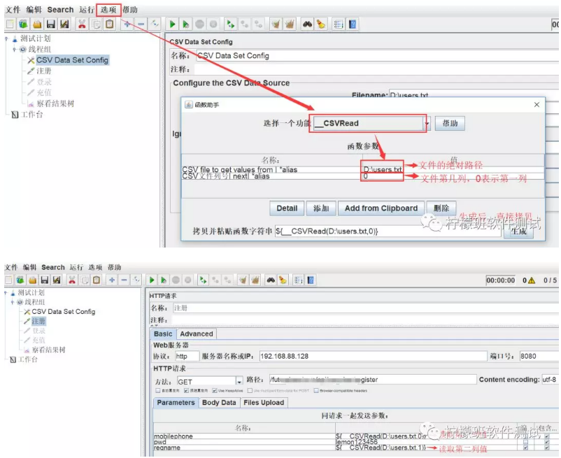 2)线程组右键添加-->配置元件-->CSV Data Set Config