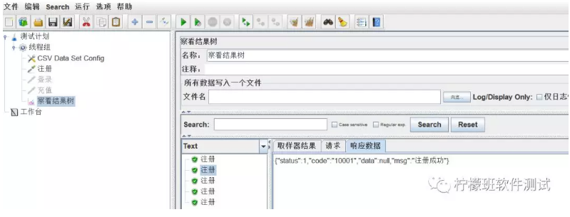 4)设置线程组中线程数为5,执行后,输出如下结果:成功