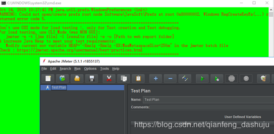 点击jmeter.bat之后会弹出命令框,并且会启动一个可视化界面,然后就可以添加测试计划