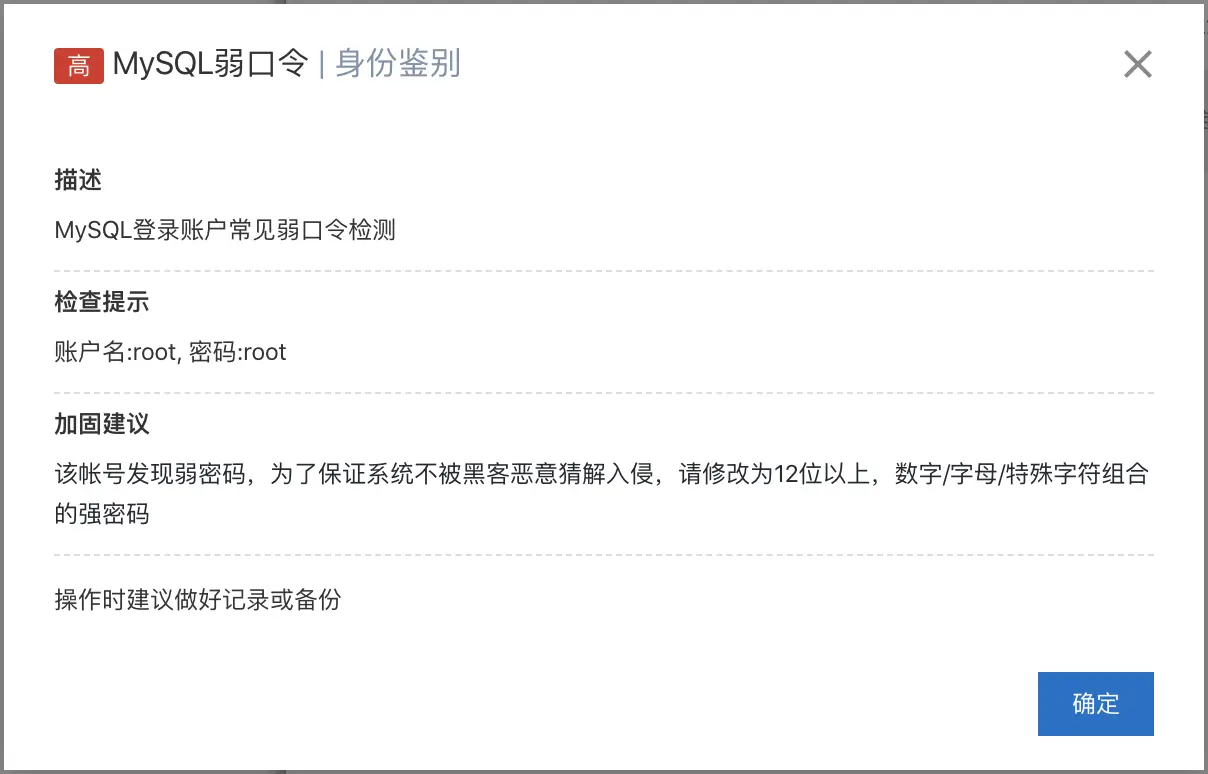- 针对弱口令、系统配置的安全风险进行持续的检查和修复;