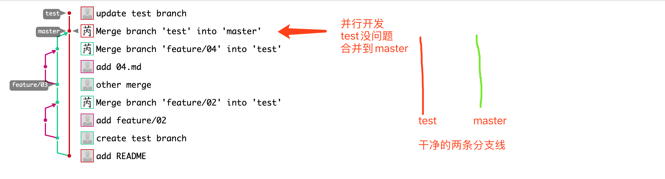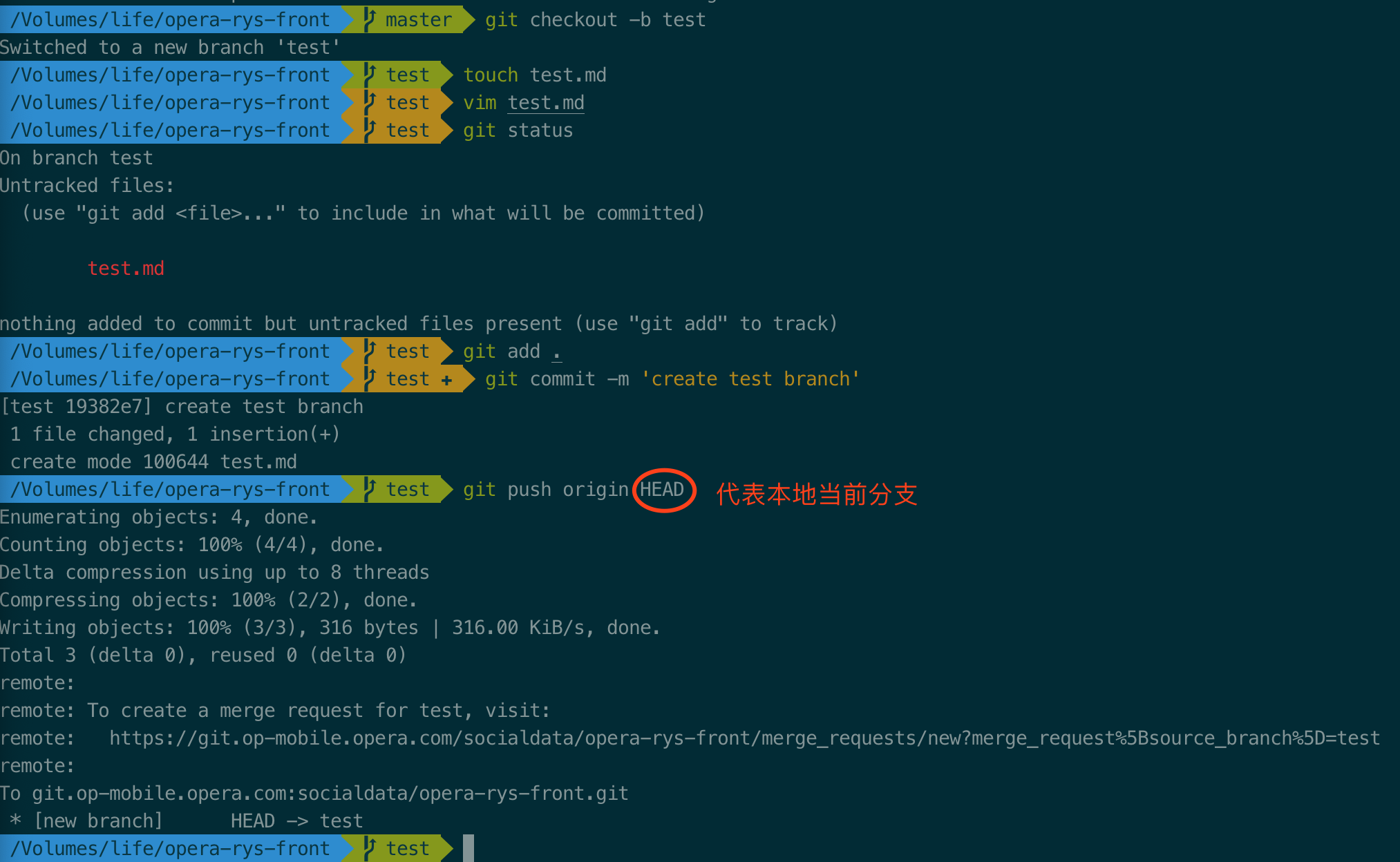 ok,这时候,我们开发完了,测试完成,发MR,将 test 合并到 master,不勾选删除当前分支