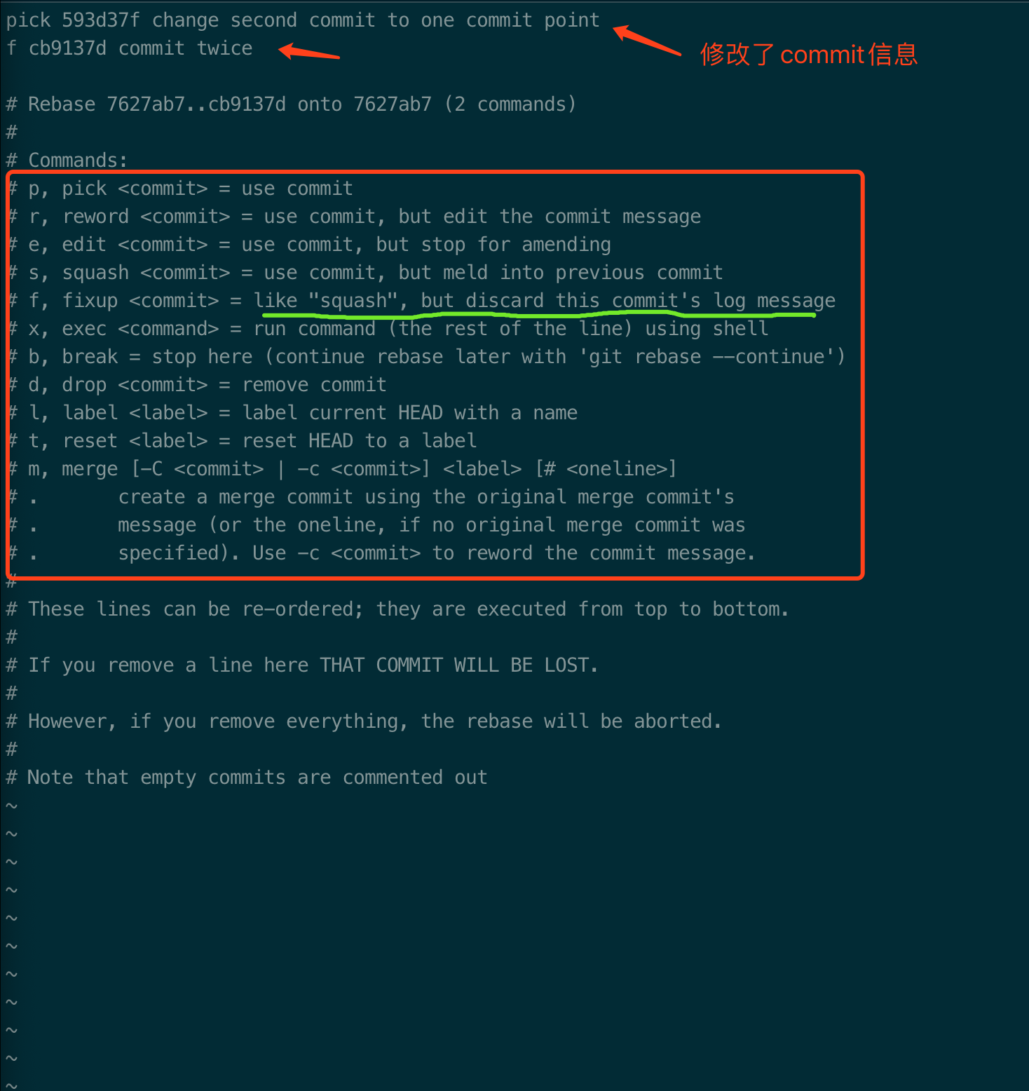 git rebase -i HEAD~<num> num代表要合并的commit点数