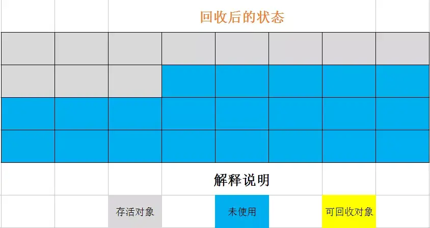 先对可用的对象进行标记,然后所有被标记的对象都向一端移动,最后直接清理掉端边界以外的内存。