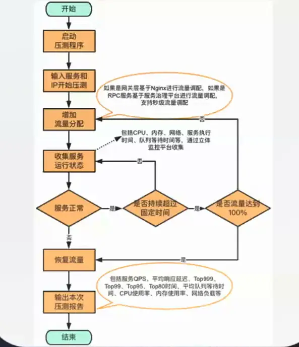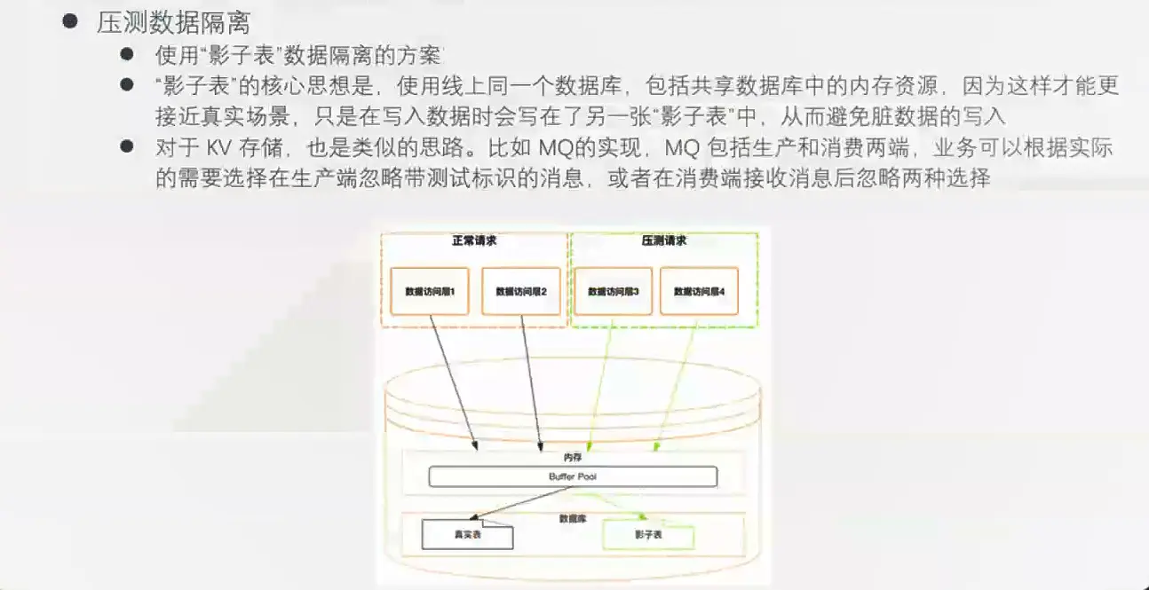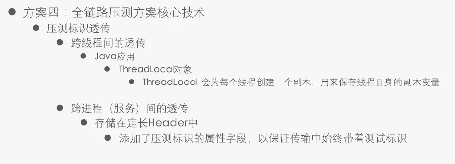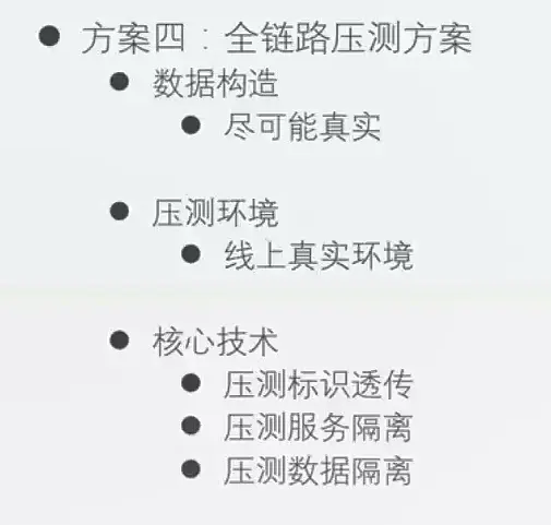 谈谈服务全链路压测设计与实践 欲知其所以然 2019-10-18 461 阅读1分钟 定义 基于线上真实环境和实际业务场景,通过模拟海量的用户请求,来对整个系统链路进行压力测试。 目的 验证新上线功能的稳定性 验证峰值流量下服务的稳定性和伸缩性 对线上服务进行更准确的容量评估 找到系统瓶颈并针对性优化 压测工具 压测极限标准 机器 load average 表示机器的负载 压测方案实施条件 为模拟更真实的条件,压测机器与线上机器同等配置,仿照线上机器的部署情况部署,同时压测一个机器上的所有服务 压测数据尽可能使用线上真实数据。 压测方案 】 方案四(推荐) 实施方案 具体实施 跨进程透传,使用Threalocal线程本地变量。