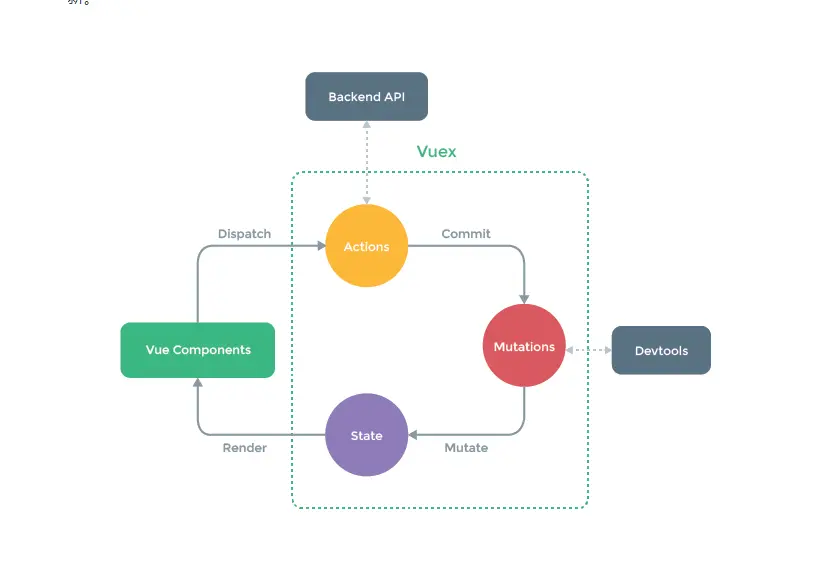 Vuex相当于一个仓库,将多个页面需要用到的数据存储在仓库中,方便调用。store store store store 在store 中有5个key值,分别为 state getter mutations actions modules state是存储静态数据的状态,相当于Vue中的data,state数据只能通过store.commit('mutations中的方法名',{payload负载}) ==store。getter相当于Vue中的methods,在里面写方法可以改变state中的值。action可以说是mutation的补充,action可以是异步的函数,可以调用store.commit()来改变mutation的值。modules的作用是将store分成多个子store,便于管理。