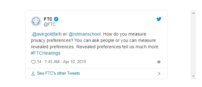 他还说,在对修正案进行讨论分类期间,价格问题也随之而来。比如客户忠实度项目就会给用户提供相应的补偿。这样的做法似乎可以让人联想到Acquisti等人一直进行的研究,但这恰巧就是该研究具有误导性的地方。