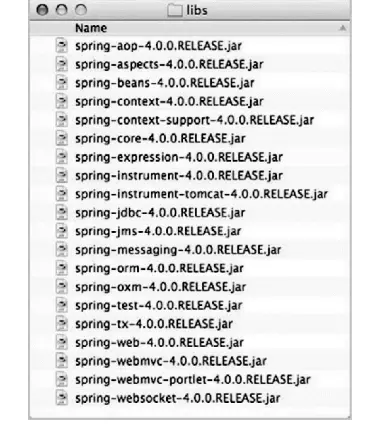 Spring框架采用的是分层架构,Spring框架的发布版本包括了20个不同的模块,每个模块会有3个JAR文件(二进制类库、源码的JAR文件以及JavaDoc的JAR文件),可以去自行下载。