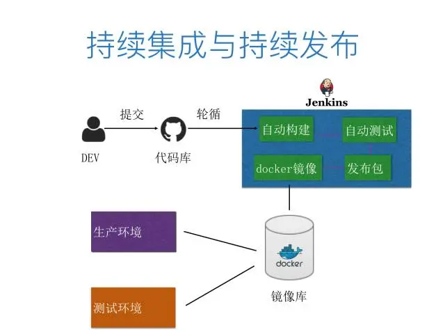 - 最后删除正在运行的Docker容器,再基于新的镜像重新把Docker容器启动,自动完成集成测试。