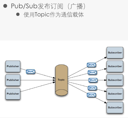 - Topic: 主题,发布订阅模式下的消息统一汇集地,不同生产者向Topic发送消息,由MQ服务器分发到不同的订阅者,实现消息的广播。