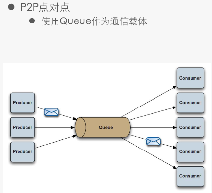 - queue: 队列,P2P模式下,特定生产者向特定Queue发送消息,消费者订阅特定的queue完成指定消息的接收。