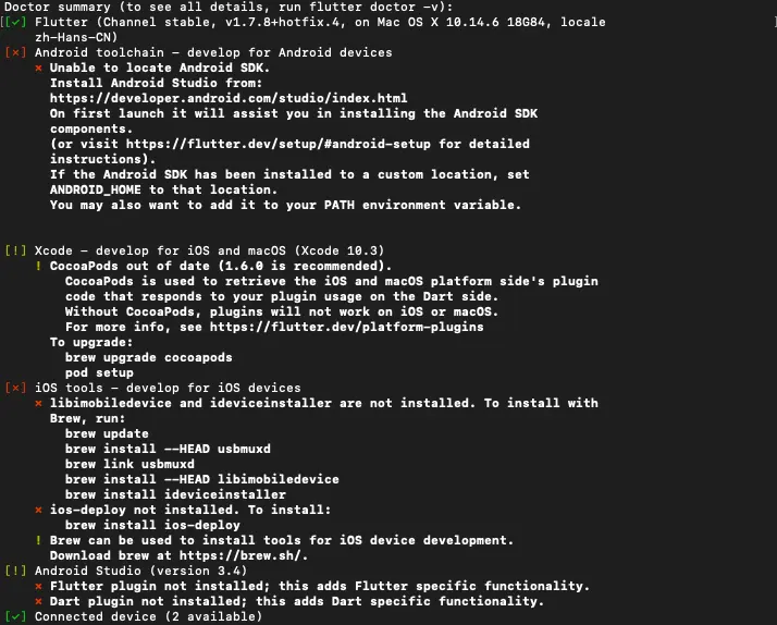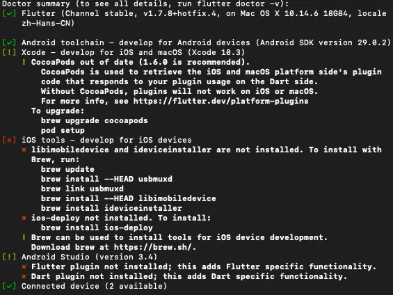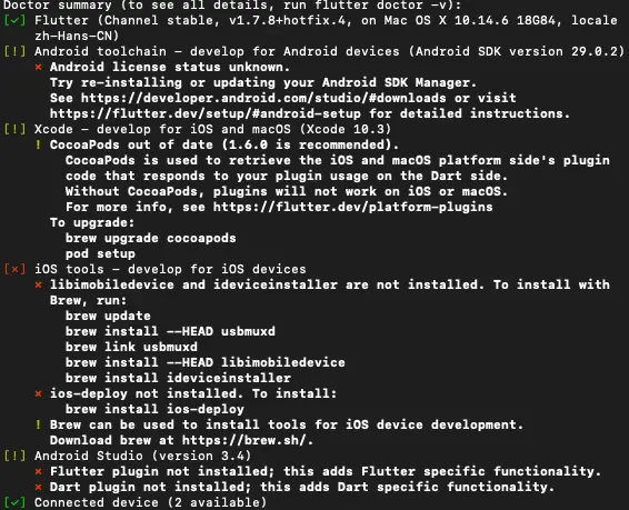 运行以下命令查看是否需要安装其它依赖项来完成安装: flutter doctor