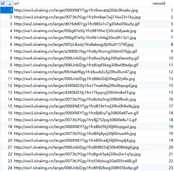 另一张表用来存放段子包含的图片链接,包括主键、图片链接、段子主键。