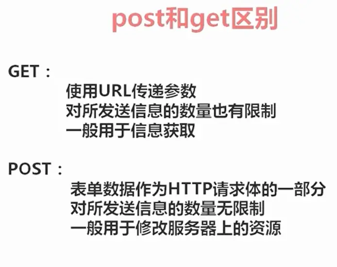get 将提交的数据暴露在url之后,并且用&连接,保密性差 post 不暴露提交内容