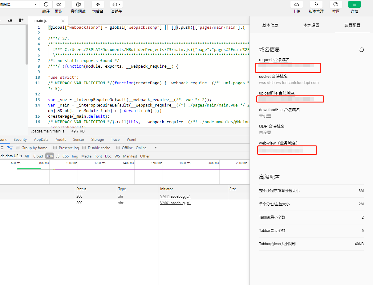 把经常用到的配置一下,这里我最开始只配置了第一个request,到发布为体验版时,我发现上传图片不能上传了, 后来想起来,在配置服务的时候没有配置uploadFile的服务接口,这里最好都配置好,以免最后麻烦,配置好之后,可以在微信开发者工具中看到配置