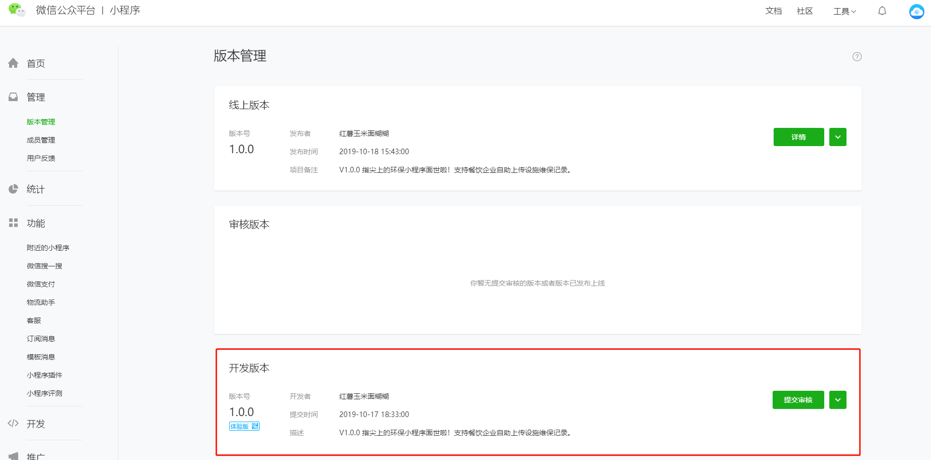 三、小程序提交审核