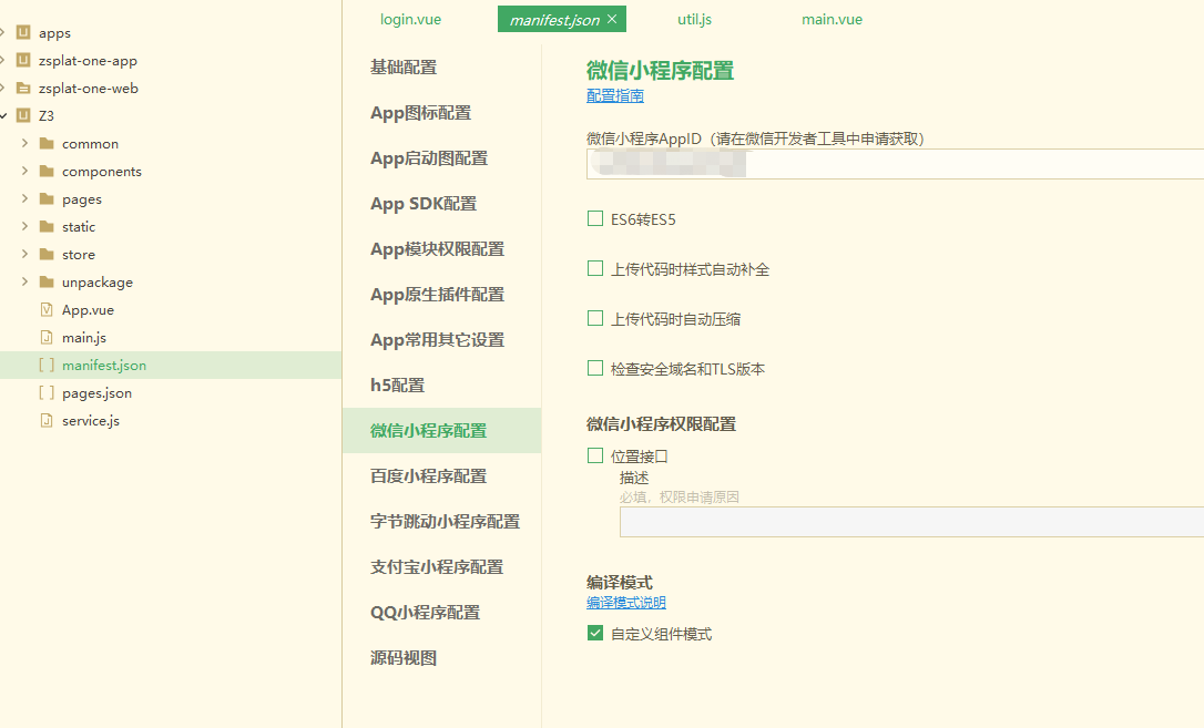 在manifest.json 中配置Appid,这样编译到微信开发者工具的时候才可以预览,真机调试,上传等。