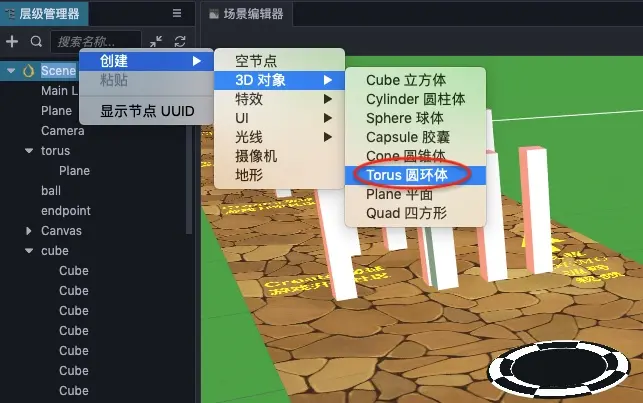 新建场景后,引擎会为我们创建默认的摄像机和灯光,这个我们就不介绍了,如果不太了解,可以参考之前的文章。我们先介绍一下游戏中的物体: