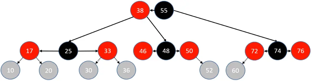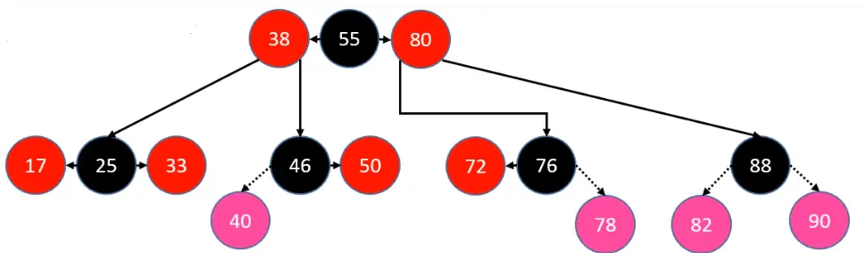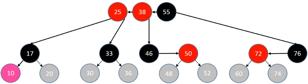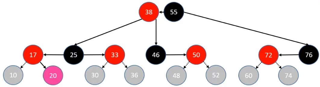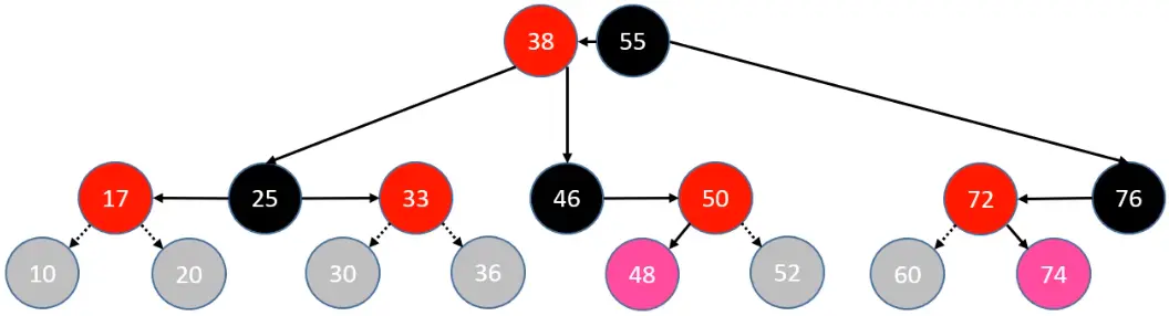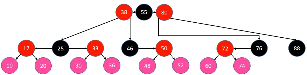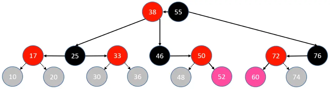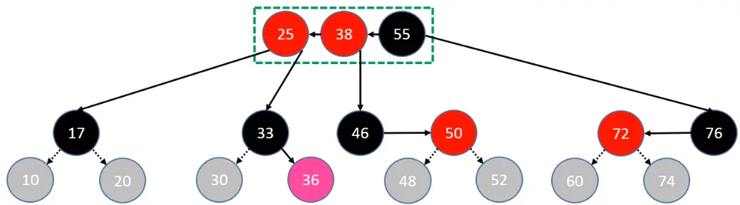 🤔如果上图最底层的BLACK节点是不存在的,在B树中是什么样的情形?