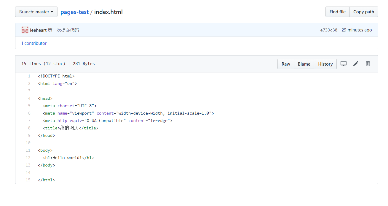 复制这个链接,并在后面加上 index.html (leeheart.github.io/pages-test/…) 即可预览我们的网页