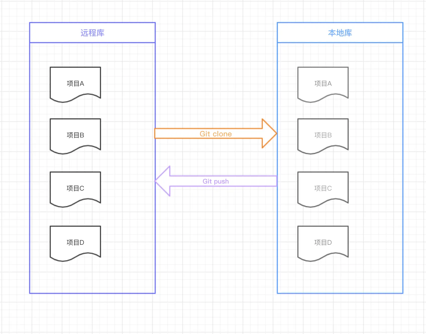 - 提交:本地库(工作区 --git add--> 暂存区 --git commit--> 版本库) --git push--> 远程库
