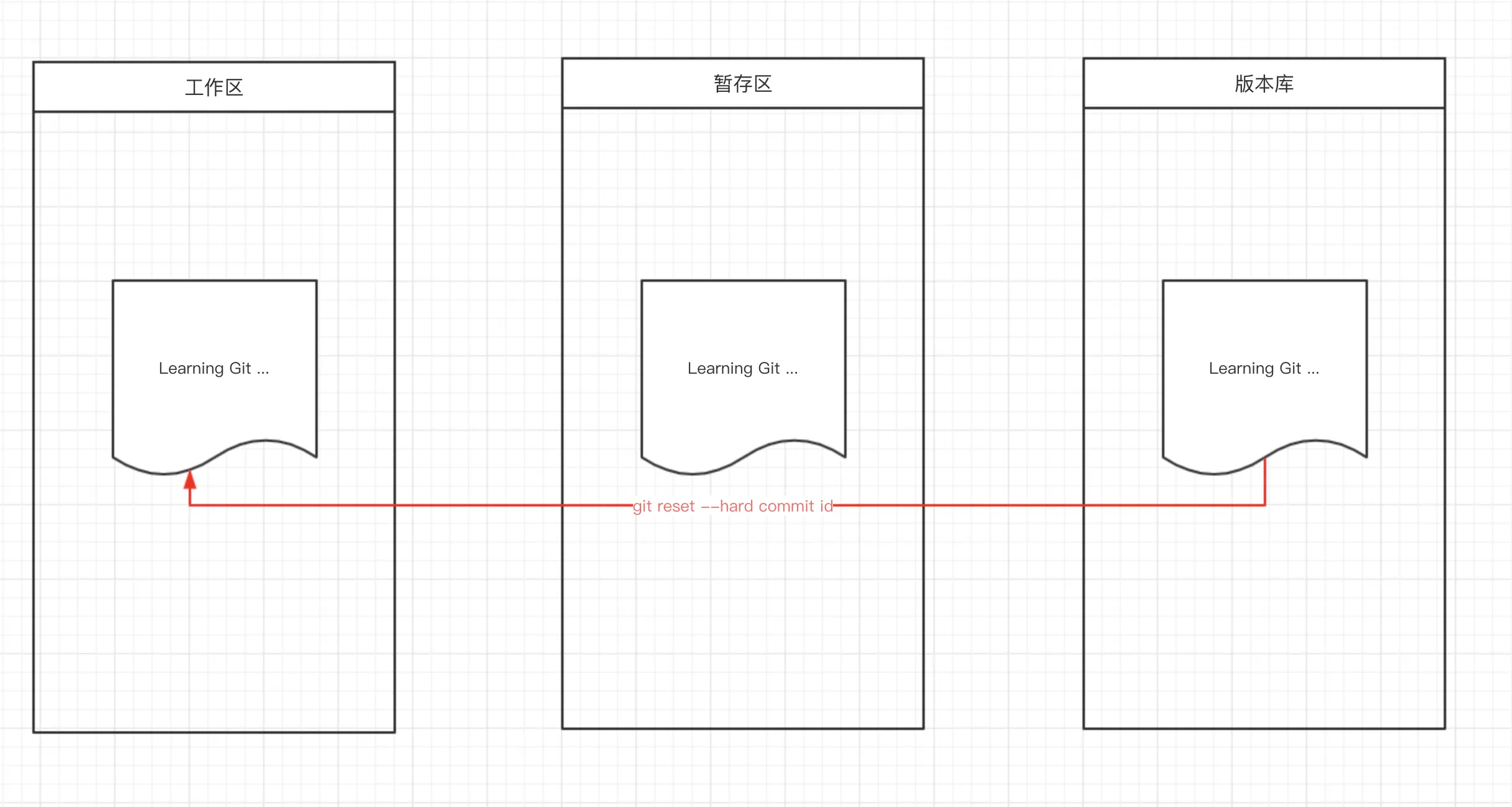 case3 : 版本库--> 工作区 -- git reset --hard commit-id(要回退到的commit id)【实质是直接让三个区回退到某一个版本】