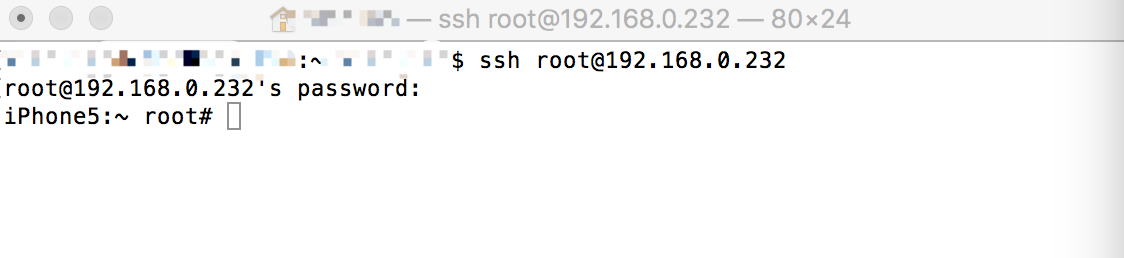 连接ssh,打开Mac的bash,用ssh连上iPhone(确保iPhone跟Mac在同一个网段)。openSSH的root密码默认为:alpine