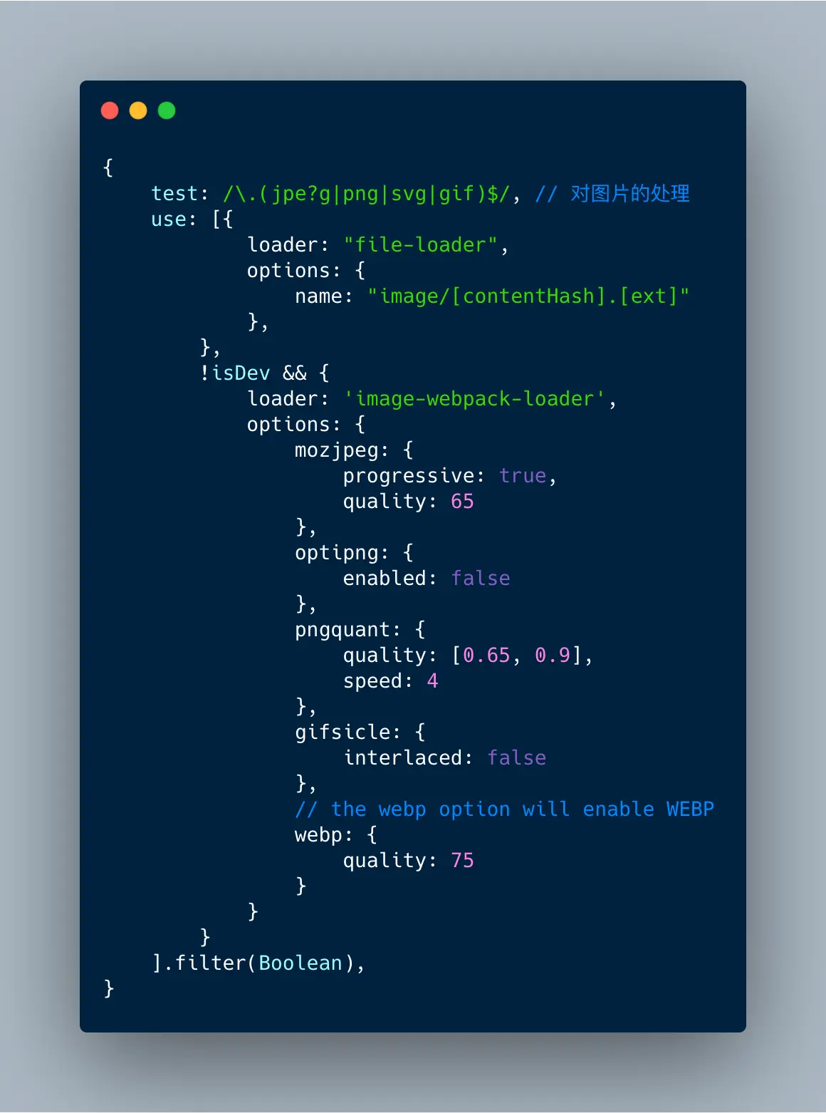 PS:这里压缩图片的配置是直接复制的npm官网上对image-webpack-loader使用介绍。