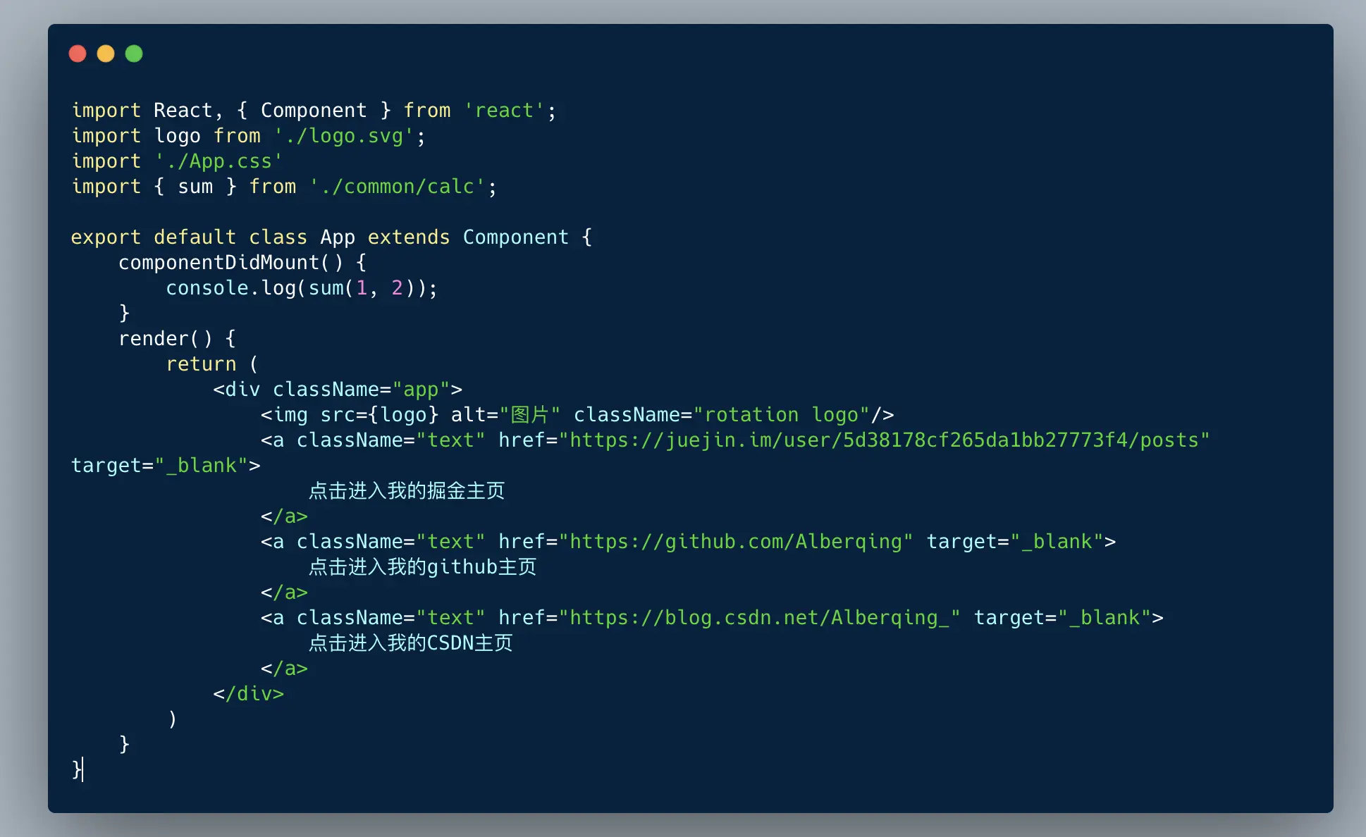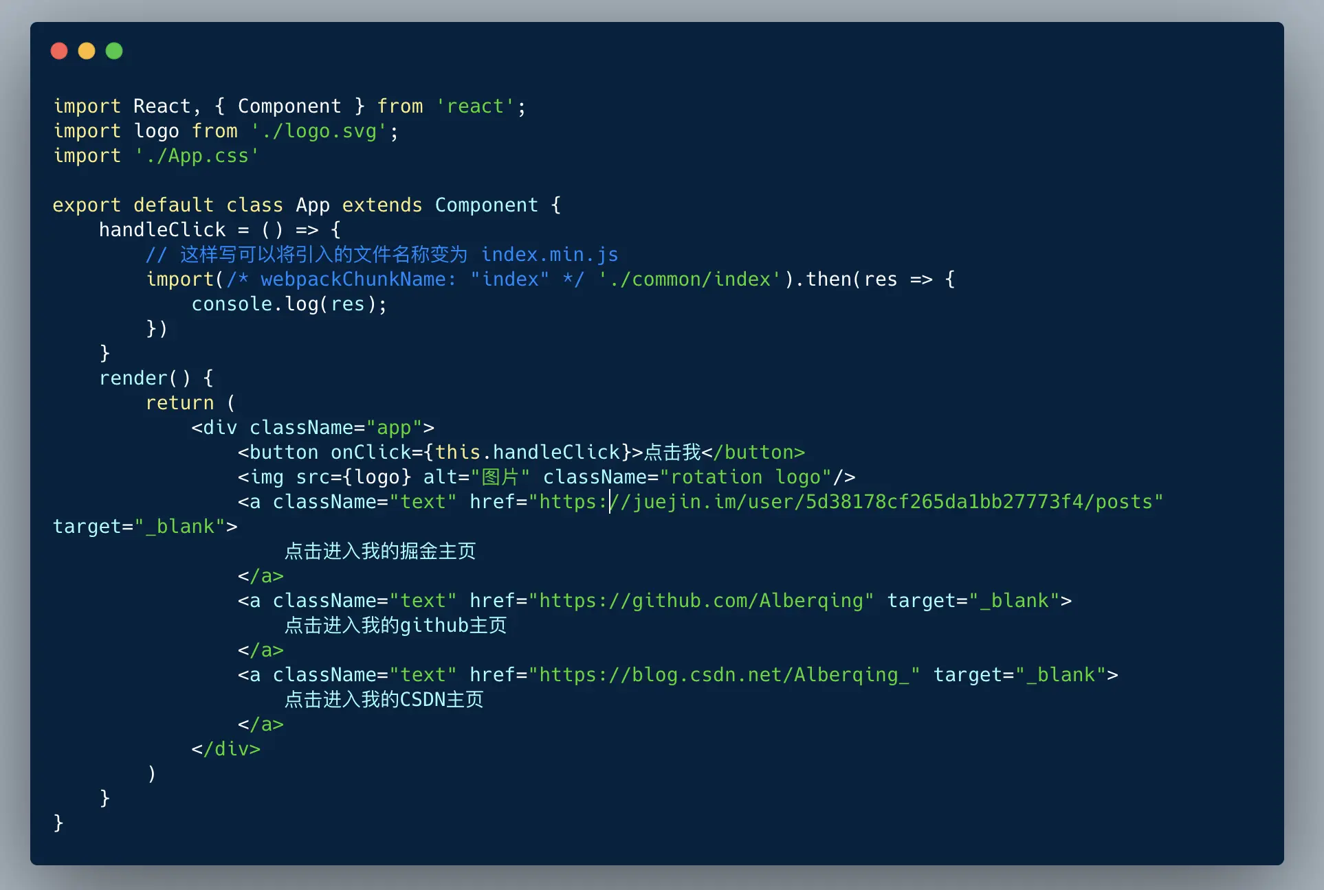 当我们在HTML页面用script标签引入一个cdn,而且呢在写react的时候我们也要引入,像这样(假如引入了jquery)