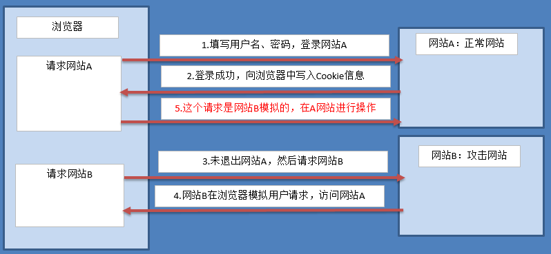 CSRF全拼为Cross Site Request Forgery,译为跨站请求伪造。CSRF指攻击者盗用了你的身份,以你的名义发送恶意请求。CSRF能够做的事情包括:以你名义发送邮件,发消息,盗取你的账号,甚至于购买商品,虚拟货币转账......造成的问题包括:个人隐私泄露以及财产安全。