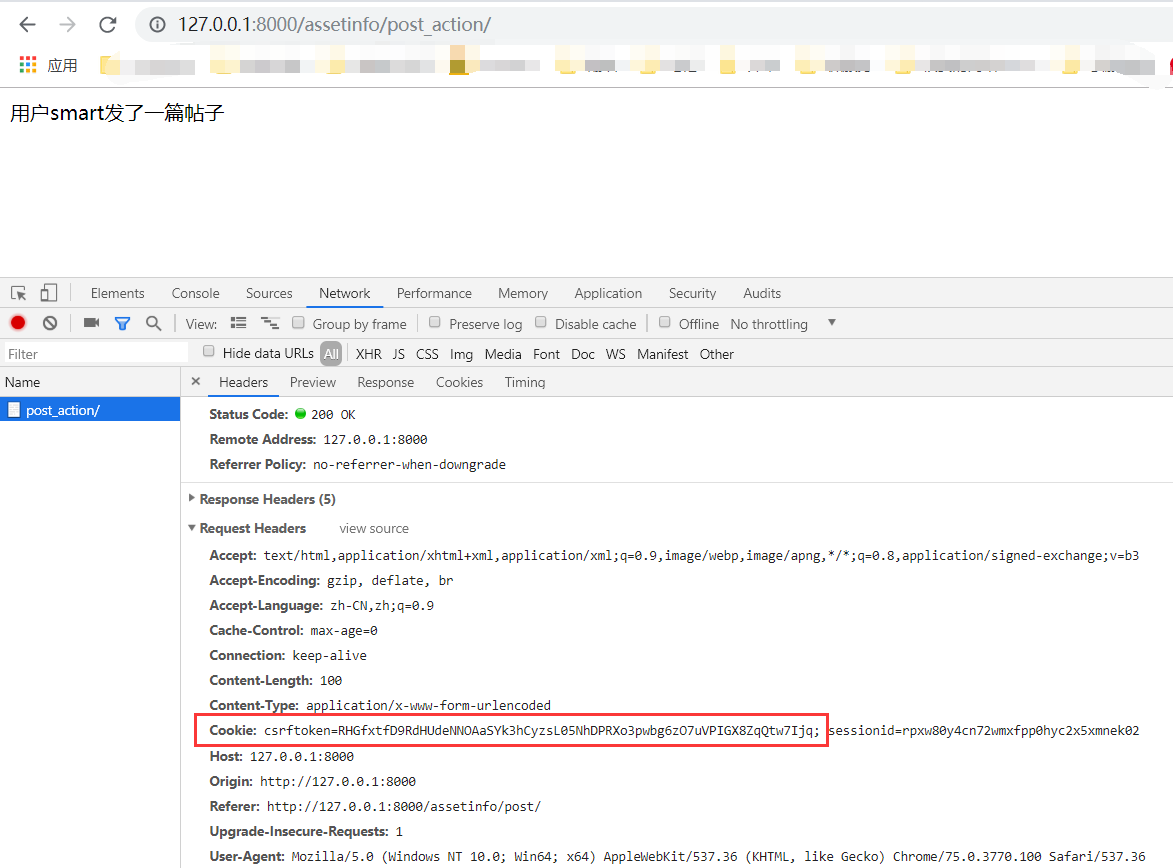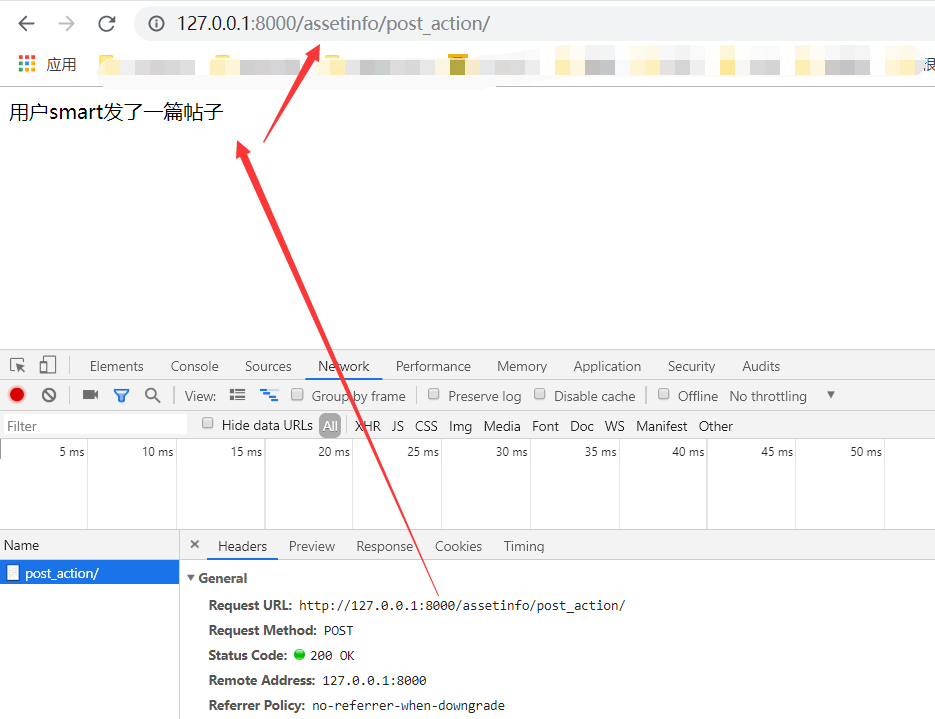 对比上面两个步骤,发现无论从网站A还是网站B都可以访问网站A的post_action视图,这就是不安全的。